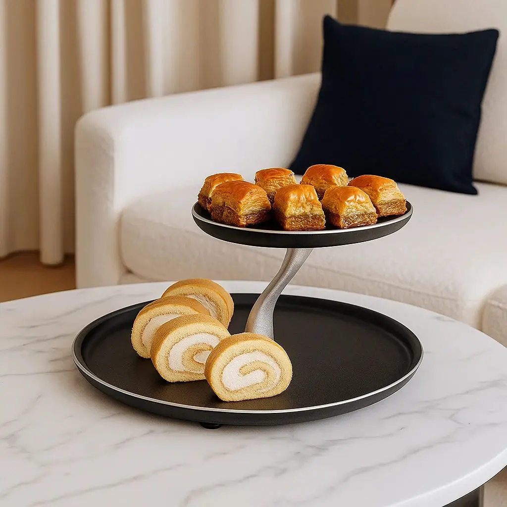 این شیرینی خوری دو طبقه، جذابیت خاصی به میز پذیرایی شما میبخشد. طراحی شیک و کاربردی آن، دکوراسیون شما را زینت میدهد و فضایی دلنشین برای سرو شیرینیها و دسرهای خوشمزه فراهم میکند. ایدهآل برای مهمانیها و دورهمیهای خانوادگی، انتخابی هوشمندانه برای هر خانه!